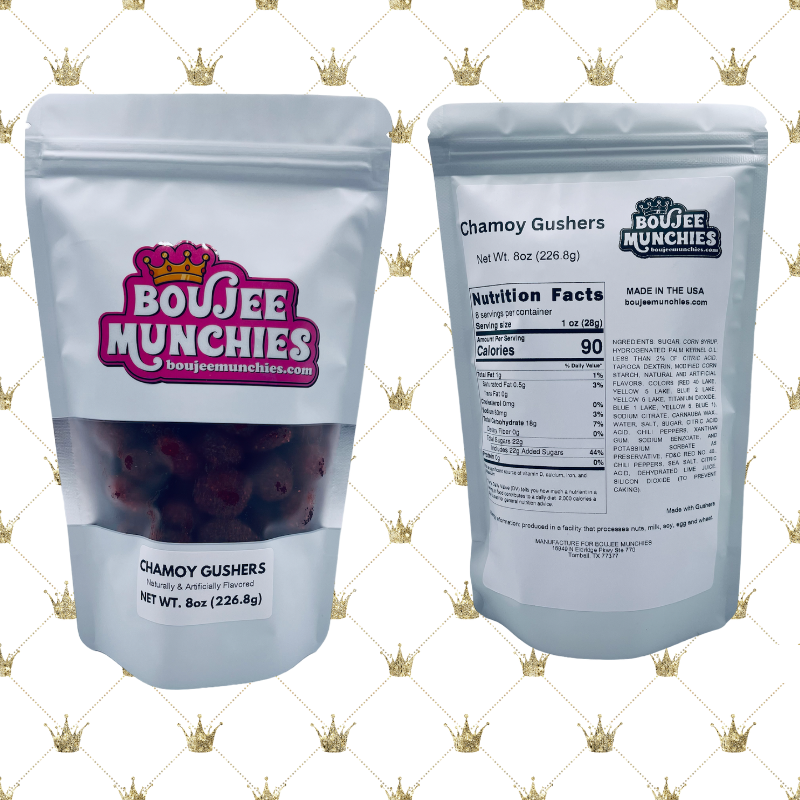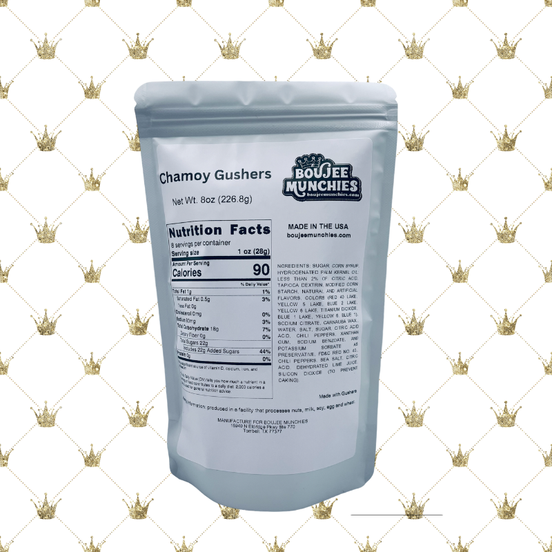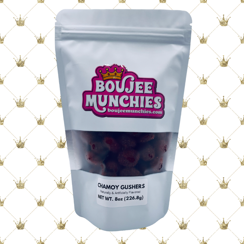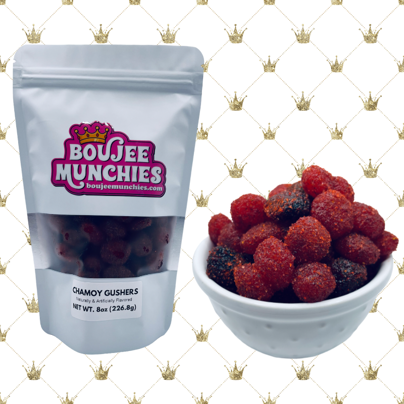 Introducing our tantalizing Boujee Munchies Chamoy Gushers, a fusion of sweet, sour, and spicy flavors that will transport your taste buds on a flavorful journey! Each bite-sized gusher is bursting with a luscious fruit filling enveloped in a tangy chamoy coating, creating a symphony of tastes that's both delightful and addictive.