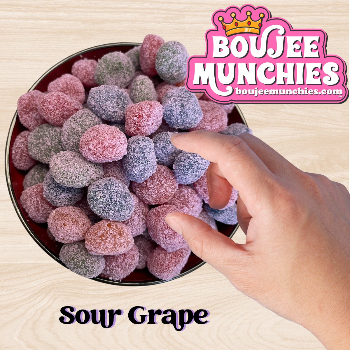 Experience the bold burst of Boujee Munchies Sour Grape Gushers, where tangy sour grape flavor meets a juicy, chewy center. Each gusher is coated for an extra zing, delivering a deliciously satisfying snack that awakens your taste buds. Perfect for a flavorful treat anytime you crave a sweet and sour delight.