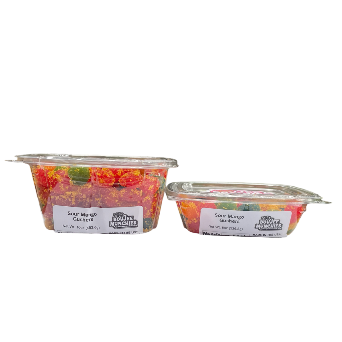 Boujee Munchies Sour Mango Gushers are a tasty candy treat that combines the sweetness of mango with a fun, sour twist. These soft and chewy candies have a juicy, flavorful center that’s perfect for anyone looking for a sweet and tangy snack.