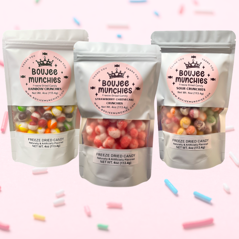 So, grab a bag of Boujee Munchies Crunchy Freeze-Dried Candy and let the snacking extravaganza begin. Get ready to samba, salsa, and snack your way to a taste adventure that's as fun as you are! Because life's too short for boring snacks – let's make it Boujee!